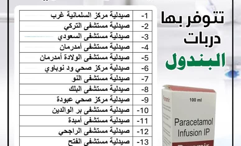 أكمل القراءة »اعلنت وزارة الصحة عن توفر دربات البندول في 20 صيدلية للدواء الدائري بولاية الخرطوم وشملت الصيدليات التي يتوفر بها درب…